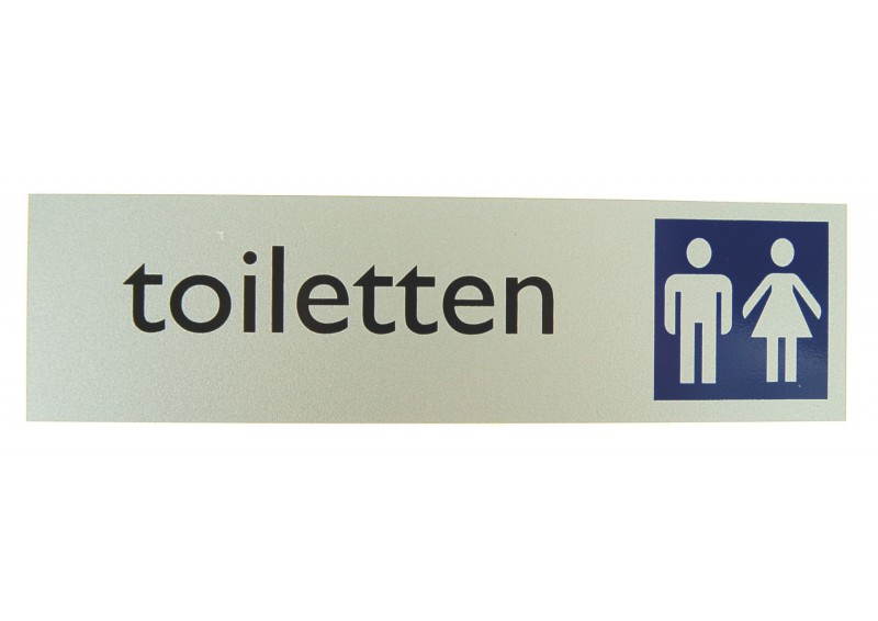 Kunststof bordje met een aluminium uitstraling. Wordt geleverd in een zelfklevende uitvoering.