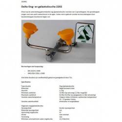 Direct op de waterleiding gemonteerde oog- en gelaatsdouche voorzien van twee sproeikoppen. De sproeikoppen zorgen voor een zachte waterstroom in de ogen. Indien niet in gebruik worden de douchekoppen beschermd tegen vuil door de beschermkappen.