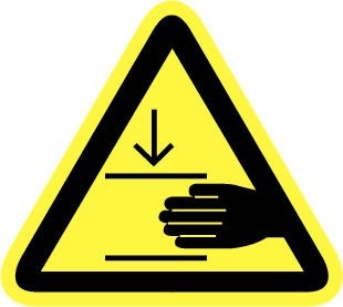 Pictogram met een waarschuwing voor pletgevaar in diverse uitvoeringen.