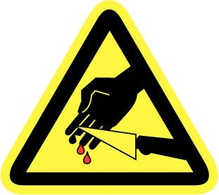 Pictogram met een waarschuwing voor snijgevaar in diverse uitvoeringen.