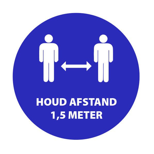 Met deze sticker wordt aangegeven dat er minimaal 1,5 meter afstand gehouden moet worden. De sticker is niet geschikt als vloersticker.