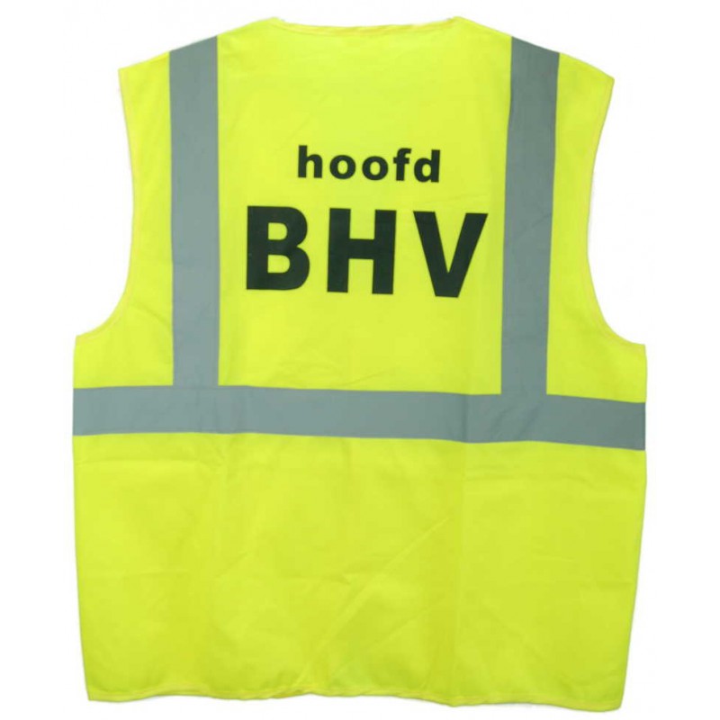 Veiligheidsvest geel met opdruk Hoofd BHV