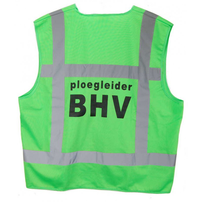 Veiligheidsvest limegreen met opdruk BHV Ploegleider in zwart. Het veiligheidsvest geeft snel duidelijkheid over functies taken tijdens een BHV inzet.