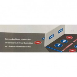 Met deze verschillende pijlen en markeringen kunt u in een ruimte een looproute maken aangeven waar er gewacht moet worden. Ook voor in scholen is dit een oplossing om te voorkomen dat leerlingen te dicht bij elkaar komen.