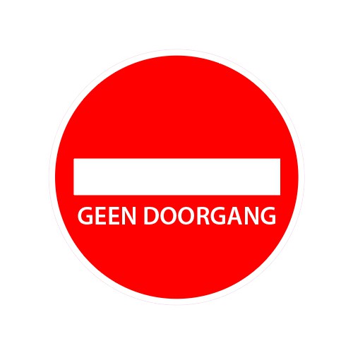 Met deze sticker wordt aangegeven waar u niet door kunt lopen. Hiermee wordt voorkomen dat mensen dicht langs elkaar komen te lopen.